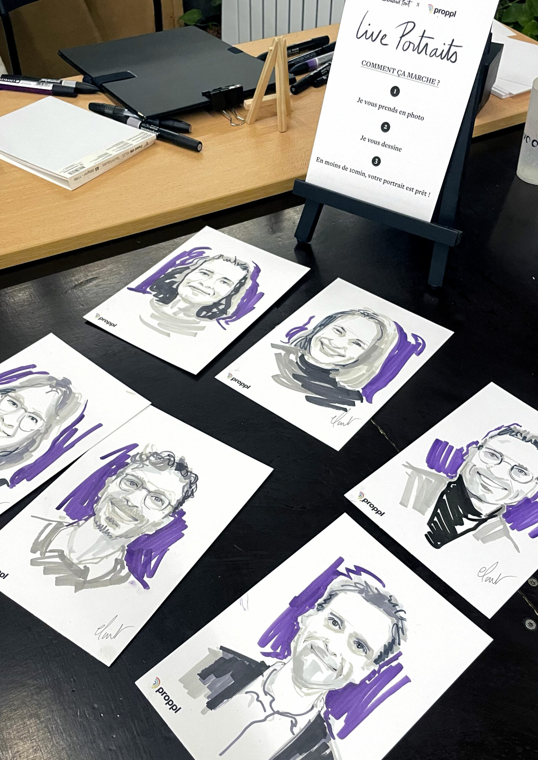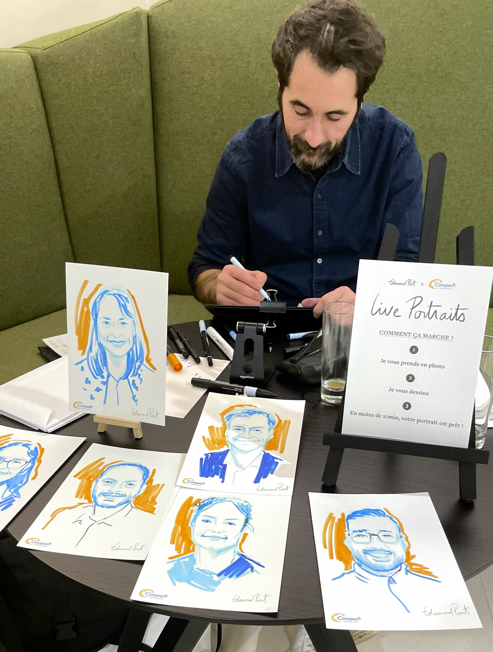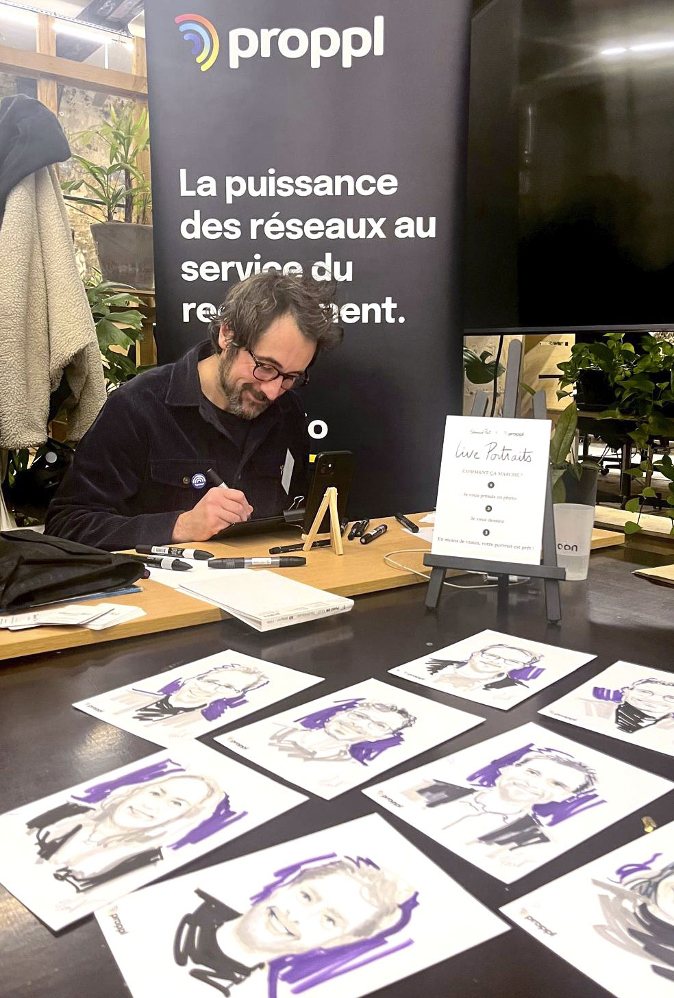 leurs portraits dessinés en direct et en quelques minutes pendant votre événement !